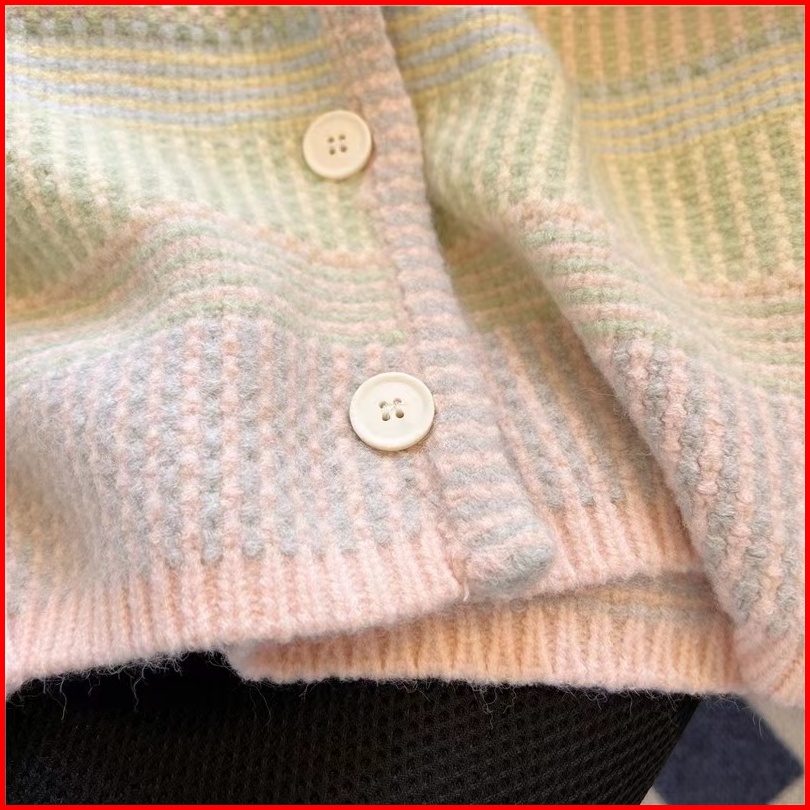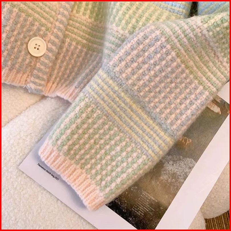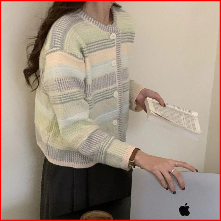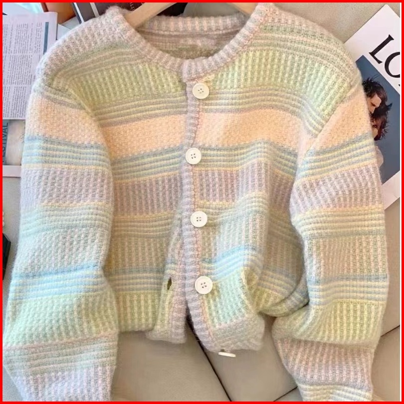 Mona Sweater Rajut Cardigan Rainbow Pelangi Wol Soft Sweater Korean Knit Rajut Premium Lembut