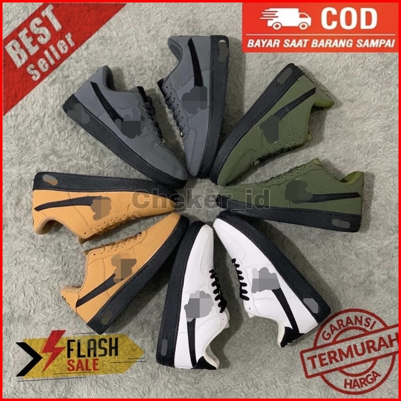 Terlaris Sepatu A1r Forc3 1 One Mid Low Black White Hitam Putih Tan Brown Army Abu Sepatu Sneakers Terbaru