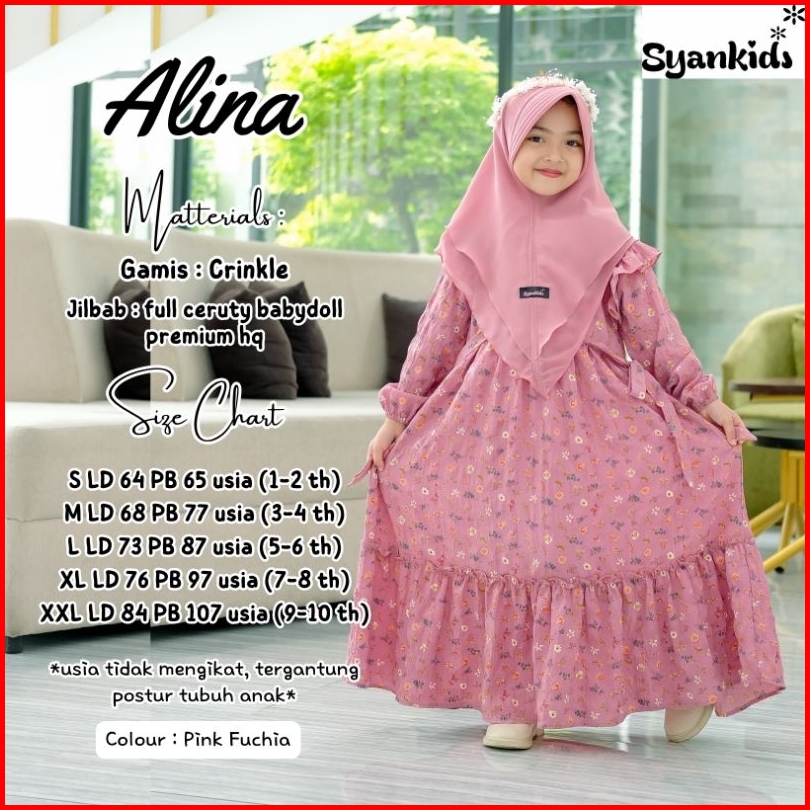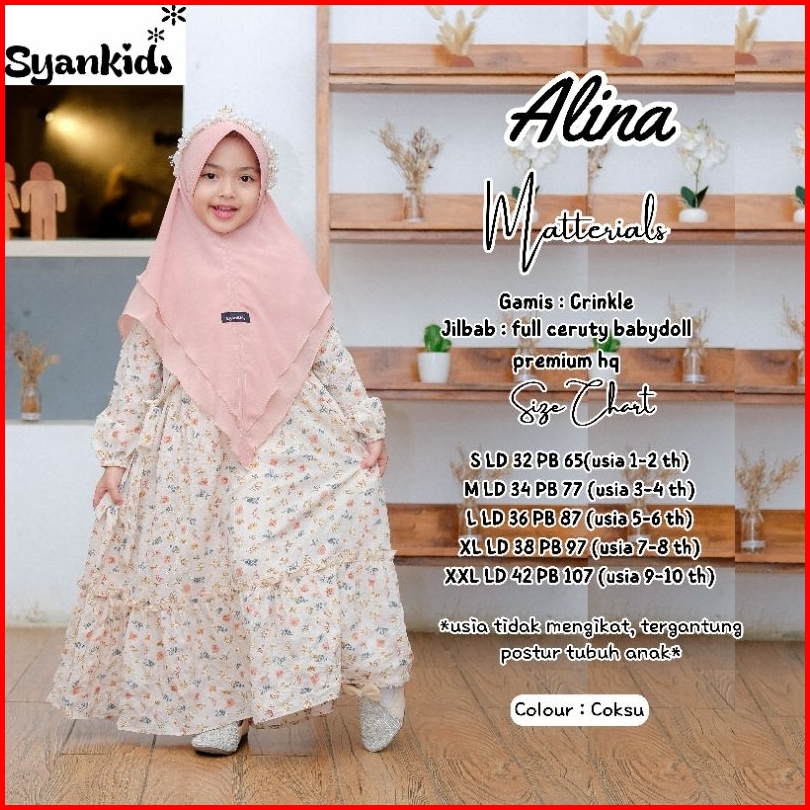 Syankids Gamis Anak Perempuan Terbaru Baju Lebaran Anak Alina Dress Kids Set Jilbab