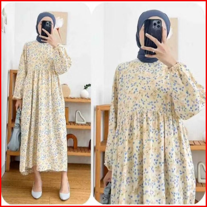 Gamis Midi Dress Motif Rayon Gamis Wanita Katun Motif Premium