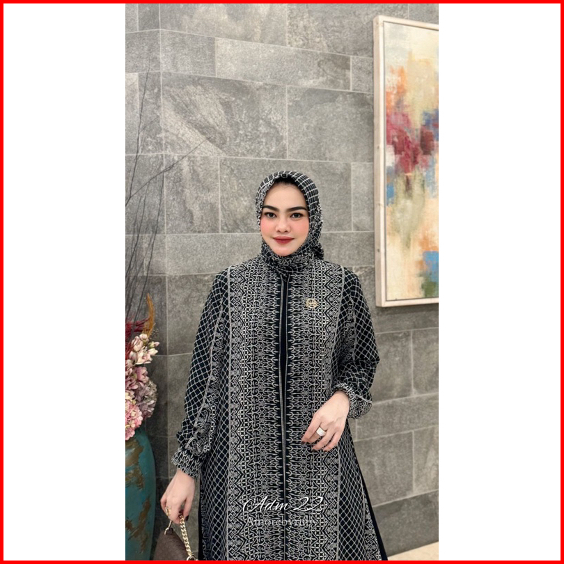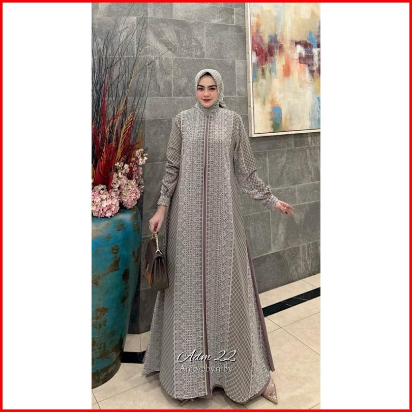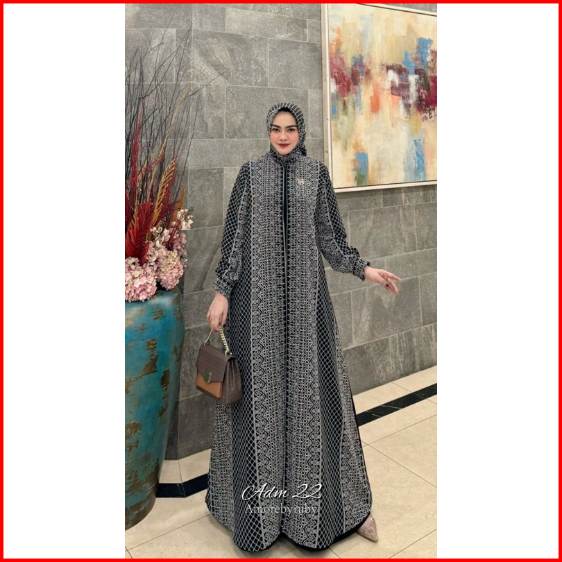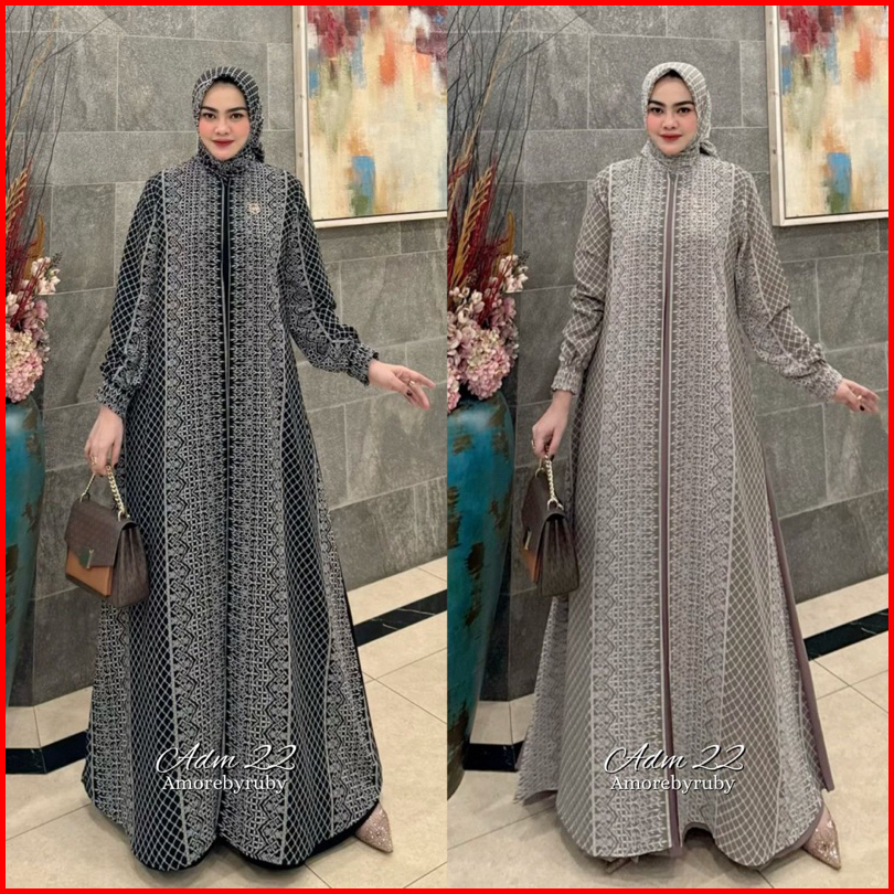 Adm 22 Dress Amore By Ruby Gamis Ceruty Motif Batik Setelan Kerudung Segi Empat Busui Friendly Lengan Balon All Size Jum