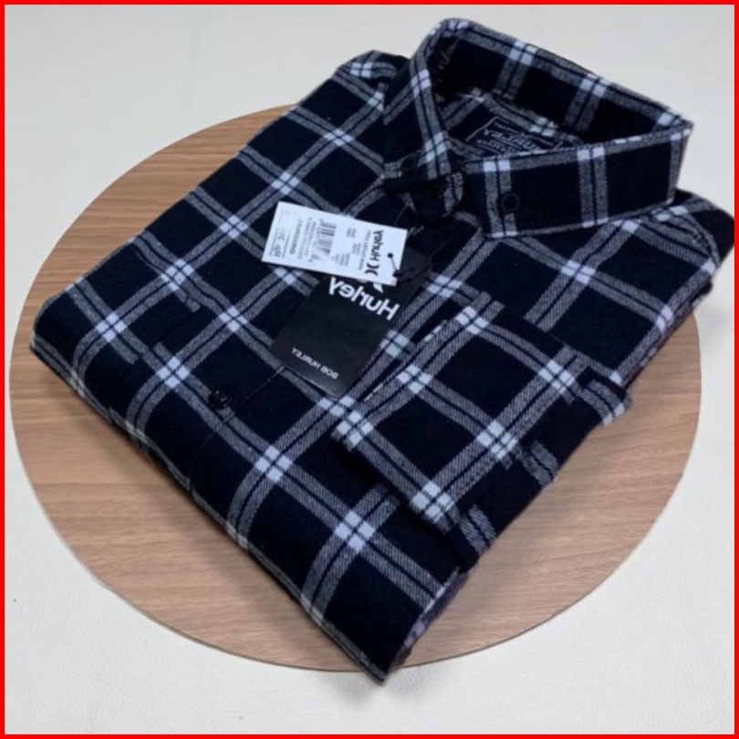 Ayz14- Kemeja Flanel Pria Wanita Lengan Panjang Premium Motif Garis Putih Double