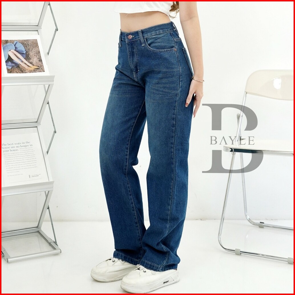 Bayle - 1018 Ml Jeans Celana Panjang Jeans Loose Jeans Highwaist Wanita Baggy Jeans Celana Riped