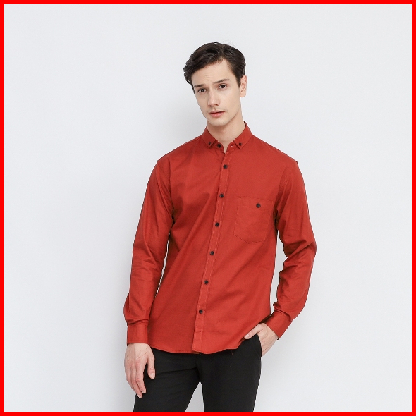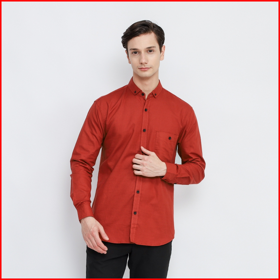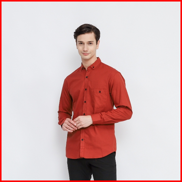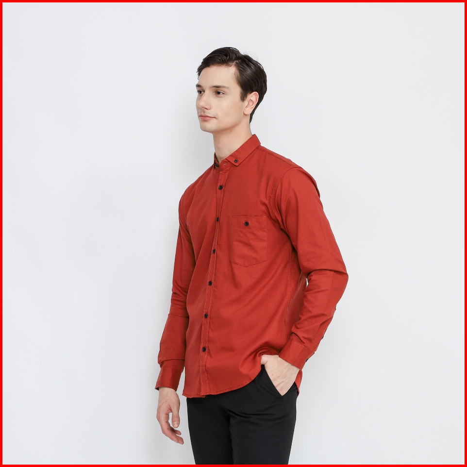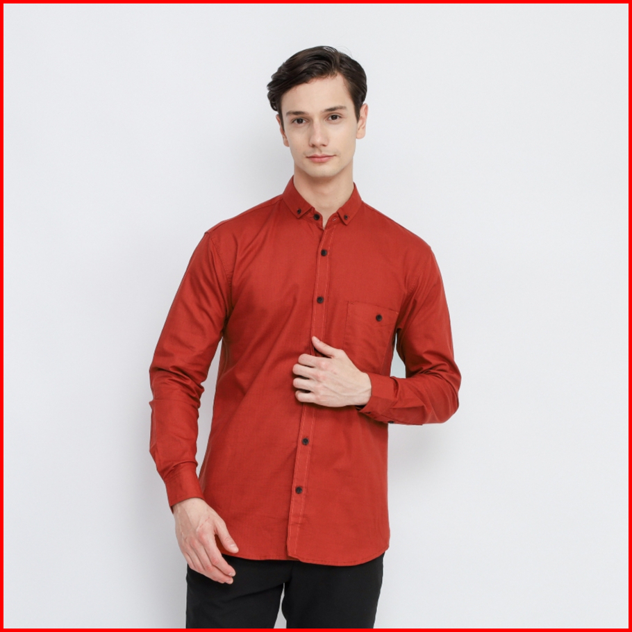 Kemeja Polos Lengan Panjang Pria Terracota Premium Kemeja Pria Terracotta Slimfit High Quality