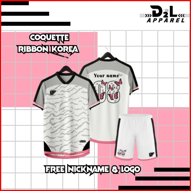 Jersey Coquette Ribbon Butterfly Grey Custom Putih Full Printing Free Nickname Logo