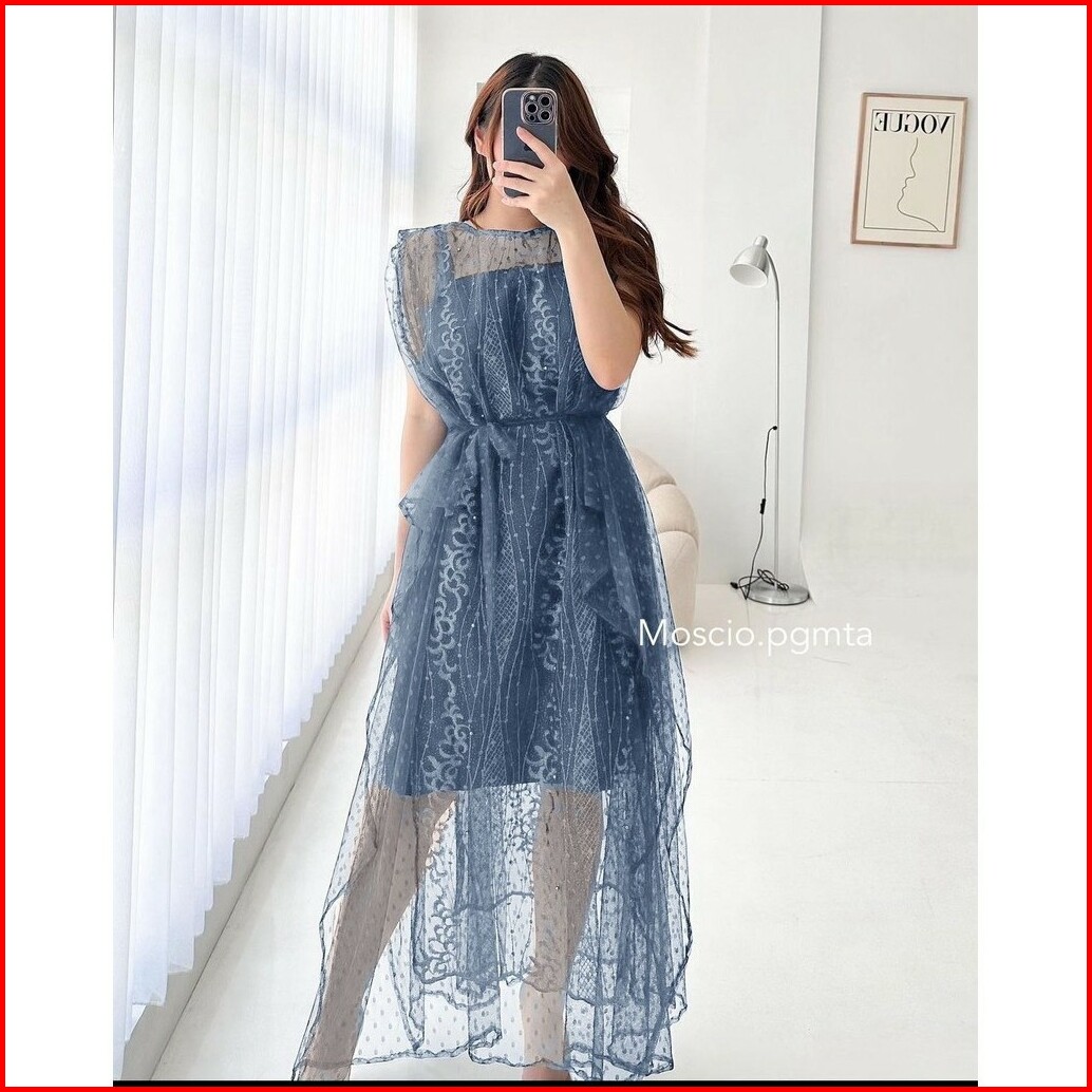 Dress Carine Brukat 2in1 Dress Natal Terbaru Dress Kondangan Wanita Fashion Wanita