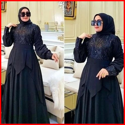 Gamis Maxi Brukat Nurhalizah Mewah Elegan Ceruty Babydoll 2layer Dress Pesta Kondangan Terbaru Jumbo