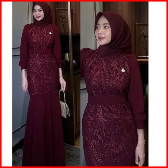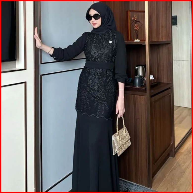Gamis Pesta Brukat Terbaru Mewah Elegan Dress Kondangan Kekinian Remaja Modern Gaun Bidesmaid Hitam