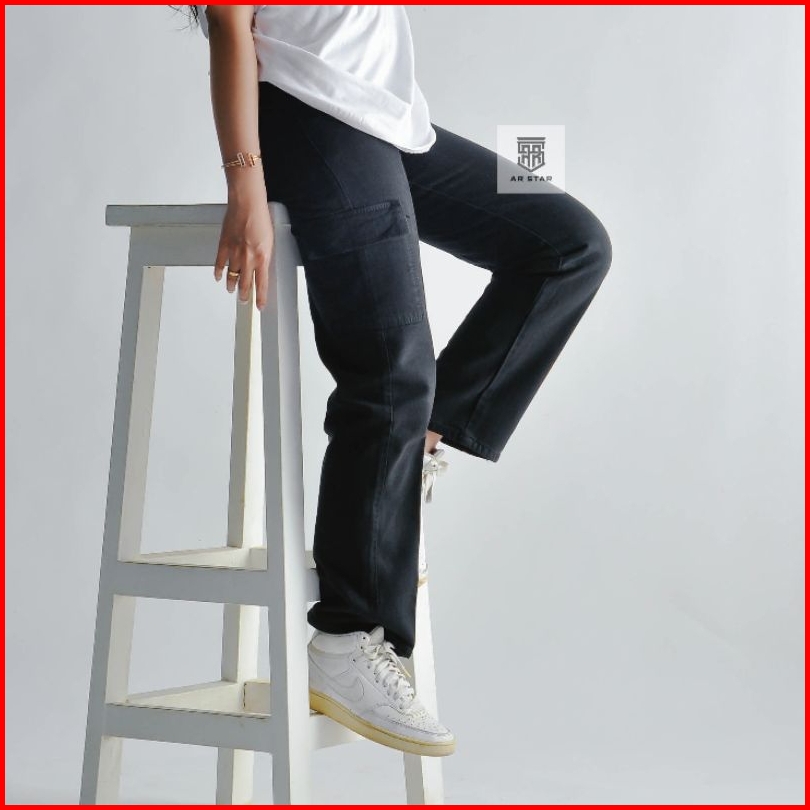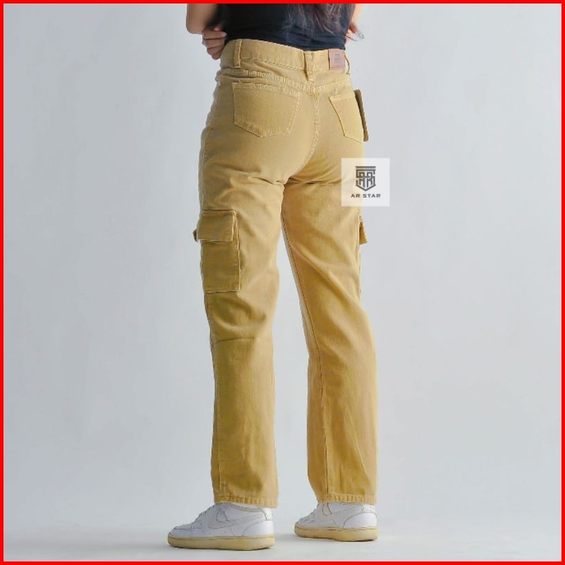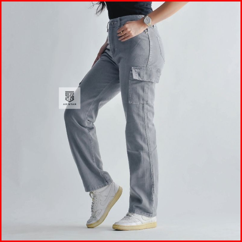 Ar Star - Celana Cargo Jeans Panjang Wanita Stretch Long Cargo Pants Haighwaist