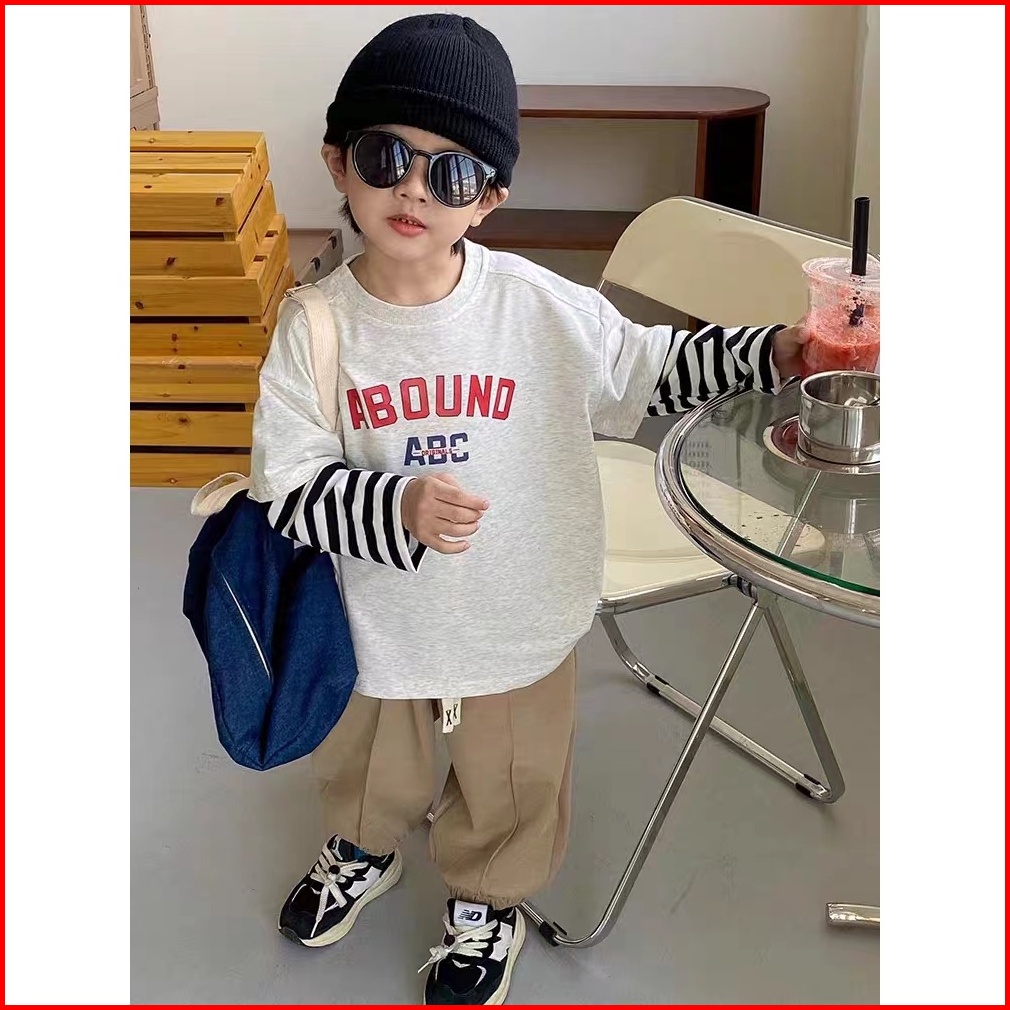 Style Terbaru Setelan Anak Laki-laki Oneset Anak Laki-laki Set Anak Laki-laki Atasan Lengan Panjang Bahan Katun Two Fake