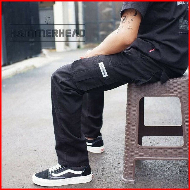 Hammerhead Celana Cargo Panjang Warna Hitam