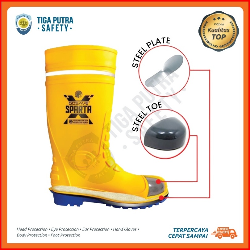 Sepatu Boots Safety Karet Pvc Ujung Besi Pelindung Steel Toe X Sparta Anti Paku