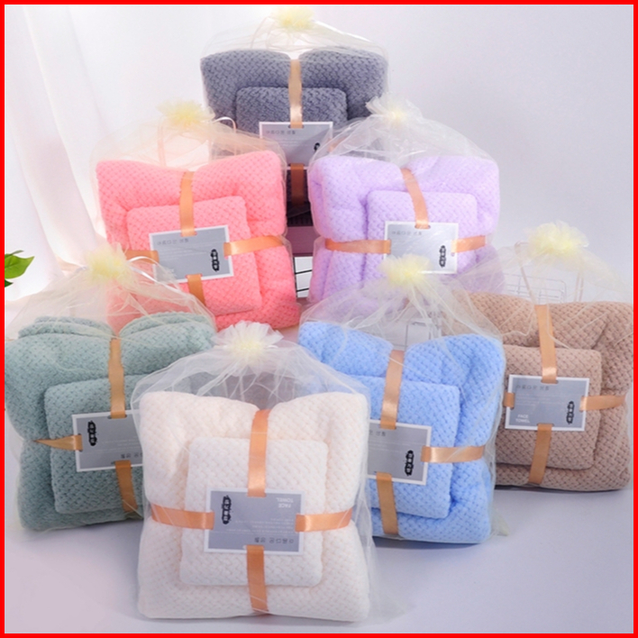 Handuk Beludru Karang Handuk Mandi 70x140cm Set Handuk Wajah Lembut Penyerap Hadiah Souvenir