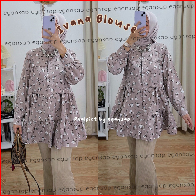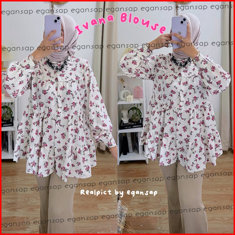 Ivana Blouse Floral Tunik Rampel Motif Bunga