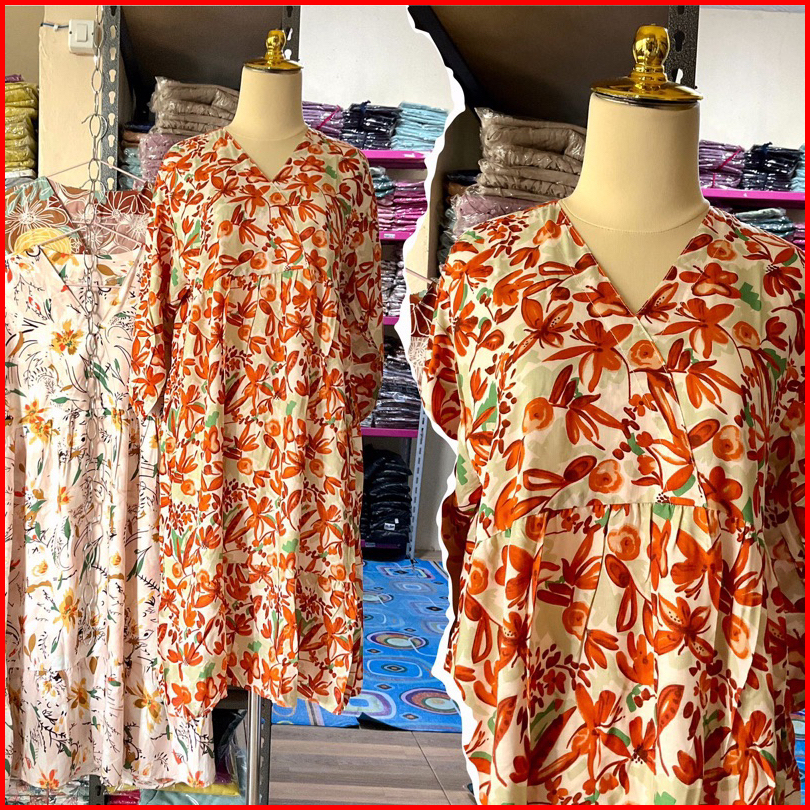 Victoria Motif Midi Tunik Tunik Motif Tunik Rayon Midi Dress Long Tunik