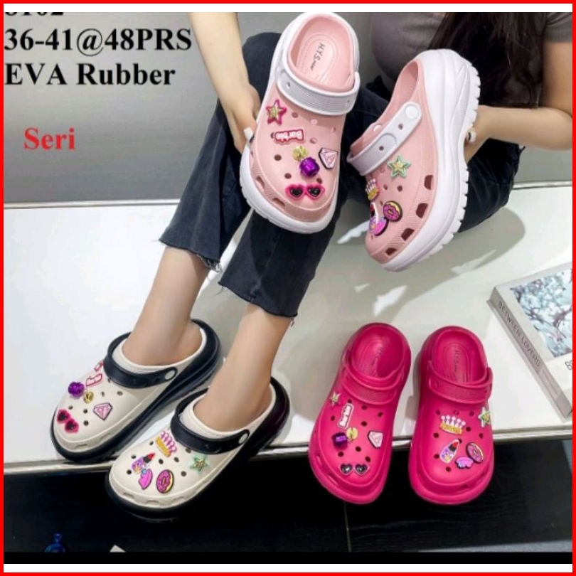 Sandal Baim Spon Tebal Tinggi 7 Cm Include Jibbitz Motif Rantai Boneka Balance 8888