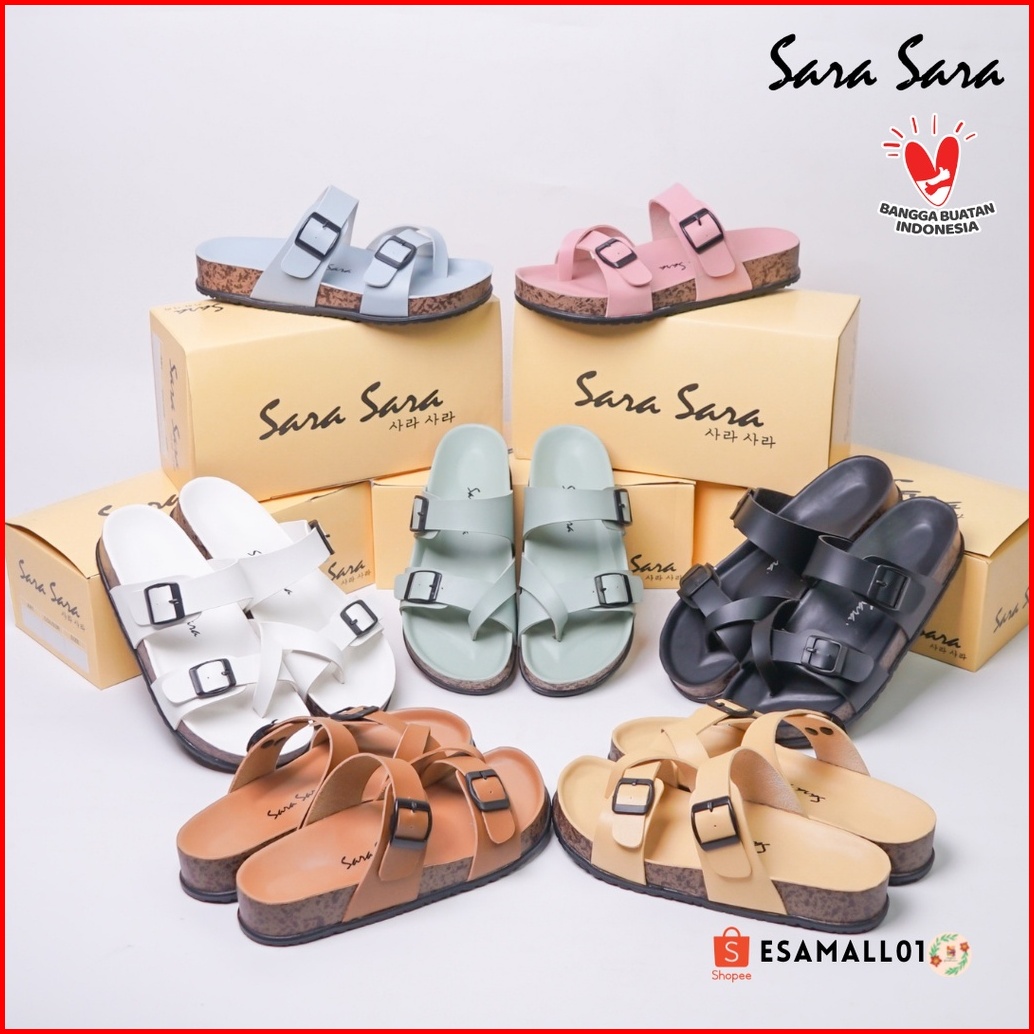 Sara Sara Kelly Sandal Jepit Slop Casual Adjustable Gesper Trendy Empuk Ringan Wanita Sarasara