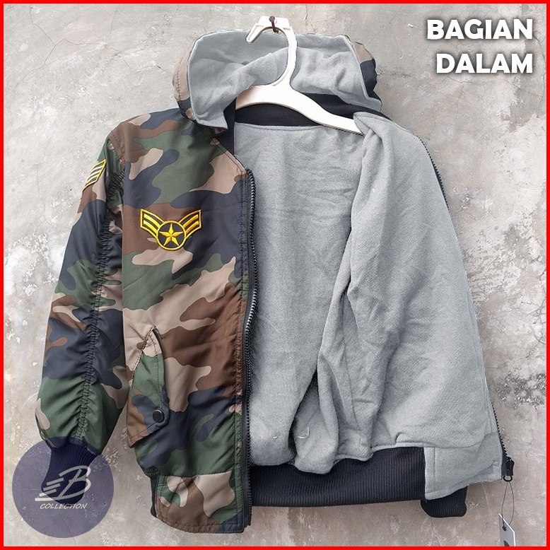 Jaket Bomber Army Anak Bolak Balik Parasut Despo Fleece - Jaket Motor Bayi Balita Loreng Hoodie Usia 1-13 Tahun Tanggung
