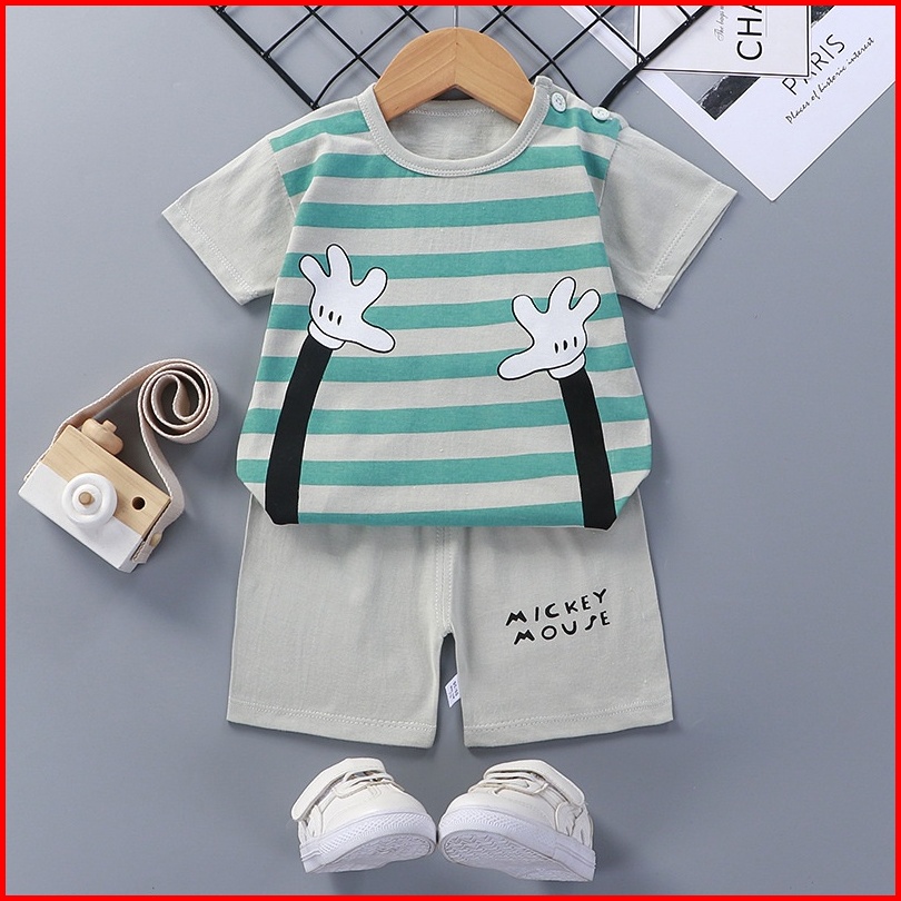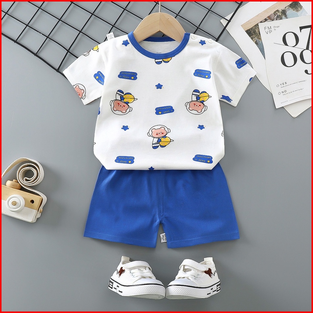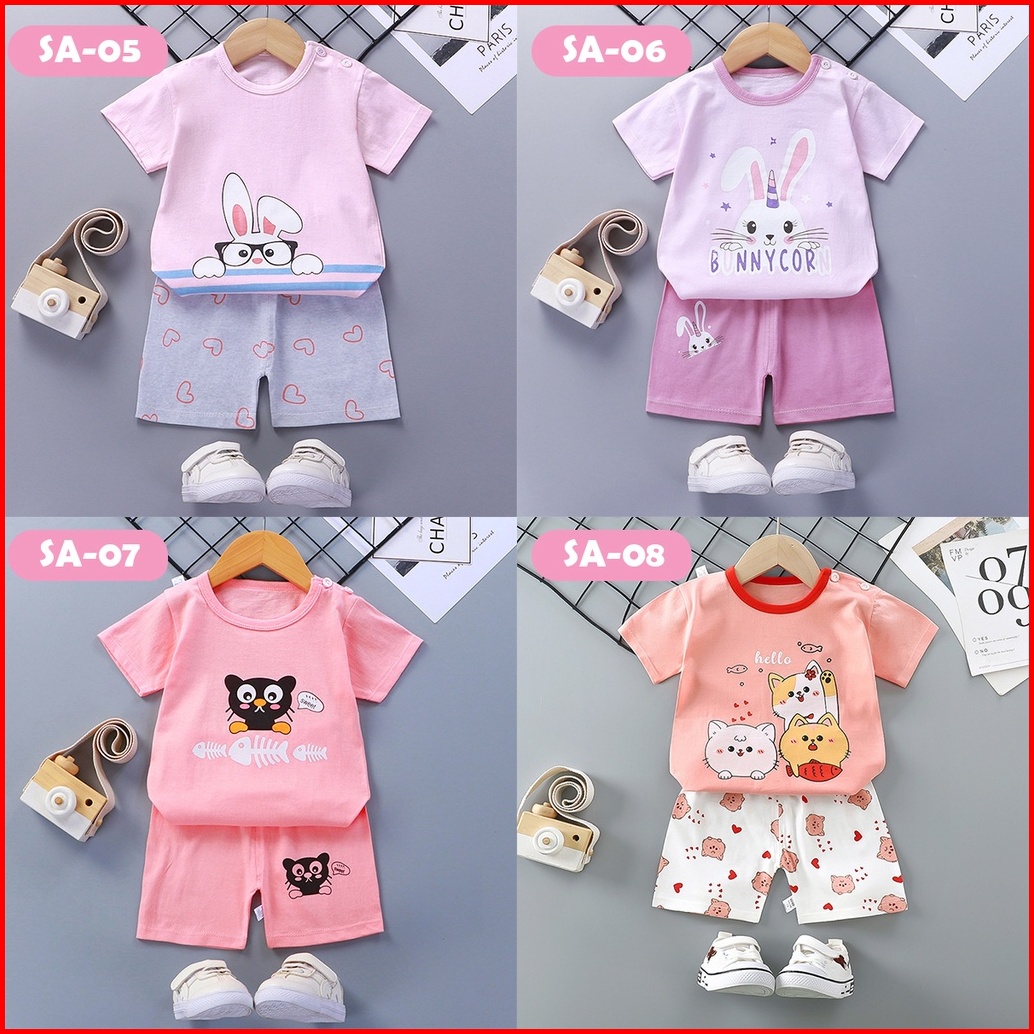 Setelan Pakaian Baju Anak Bayi Perempuan Laki Laki Lengan Pendek Umur 1 - 5 Tahun