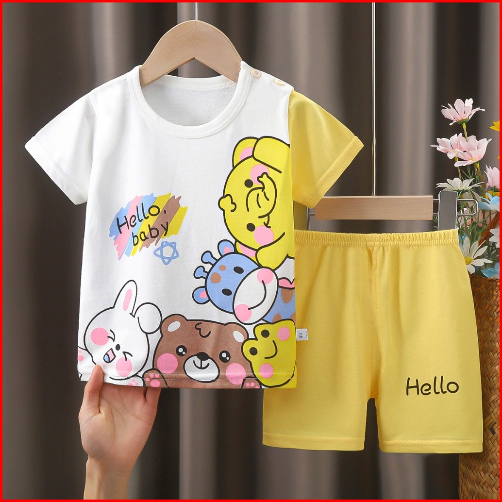 Unikid Setelan Baju Anak Bayi Lengan Pendek 0-6tahun Bahan Katun Premium Import