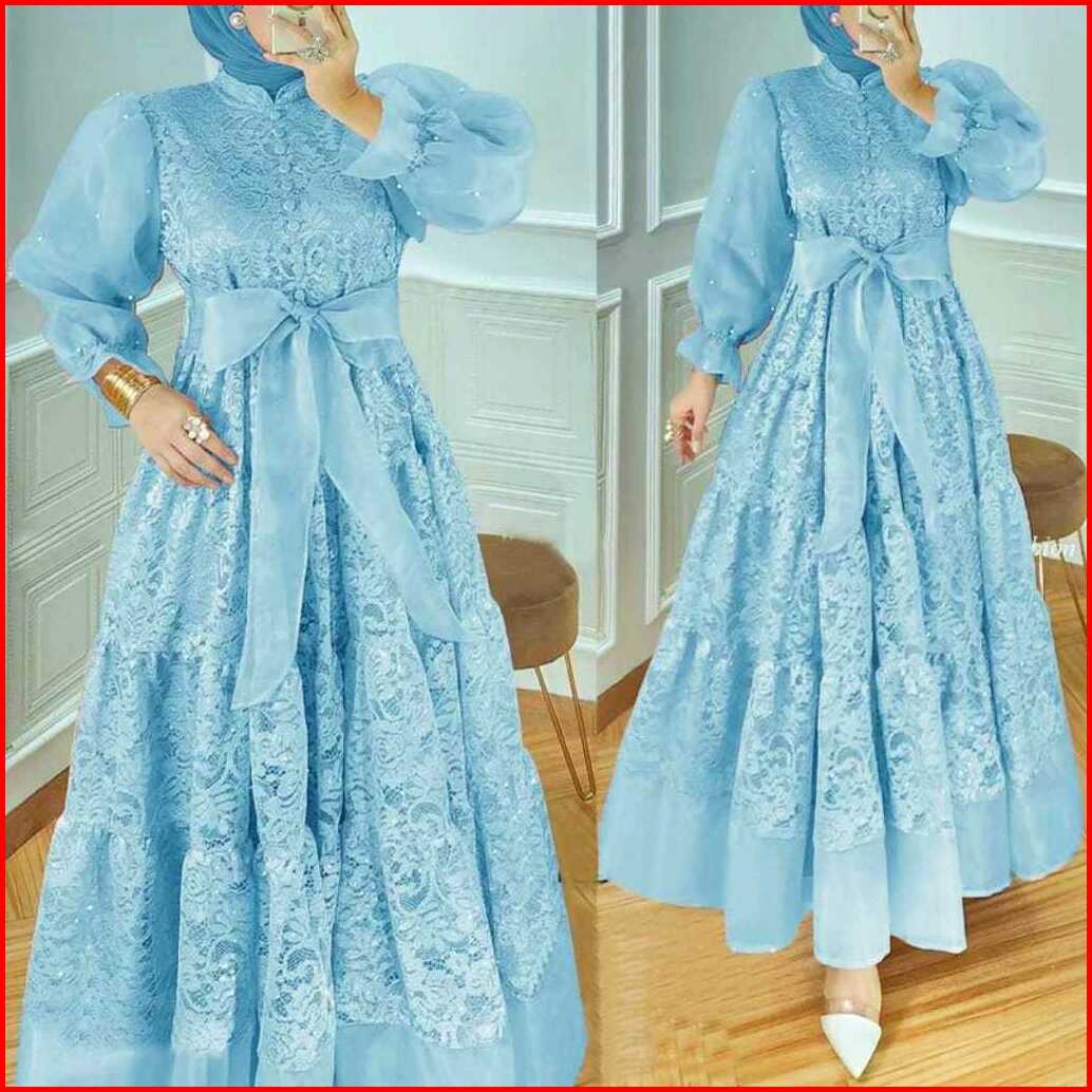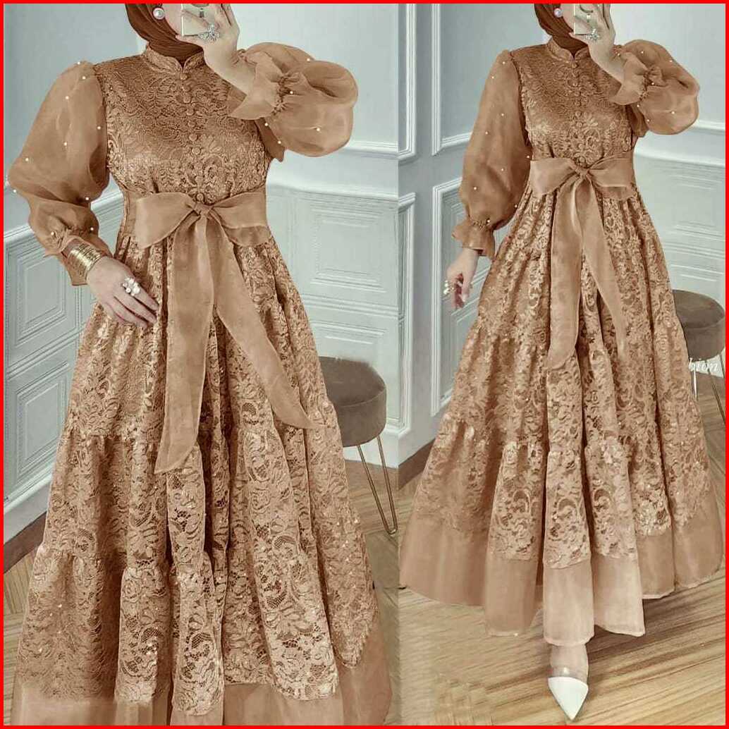 Gamis Lalisa Maxi Full Brukat Busui Gamis Lengan Organza Mutiara Terbaru Mewah Kondangan Pesta