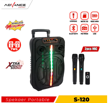Advance Speaker S-120 Bluetooth Music Karaoke 12inch Free Mic