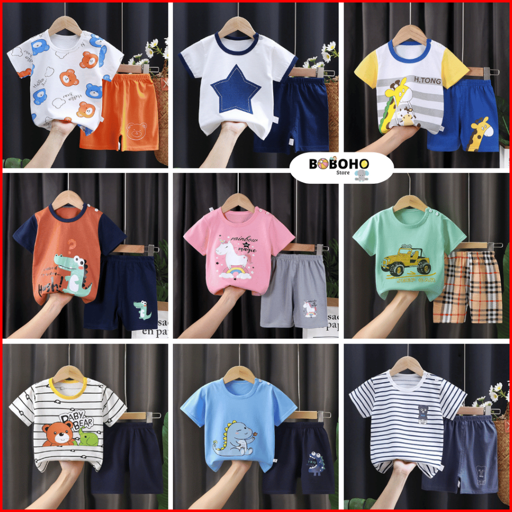 Boboho - Setelan Baju Bayi Baju Anak Laki-laki Setelan Kaos Anak Baju Bayi Lengan Pendek Part 3