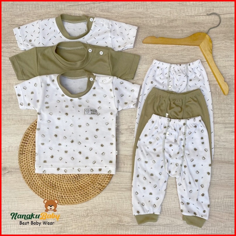 Nanaku Baby - Isi 3 Setelan Baju Bayi Lengan Pendek Celana Panjang Series Hijau Army Usia 0-18 Bulan