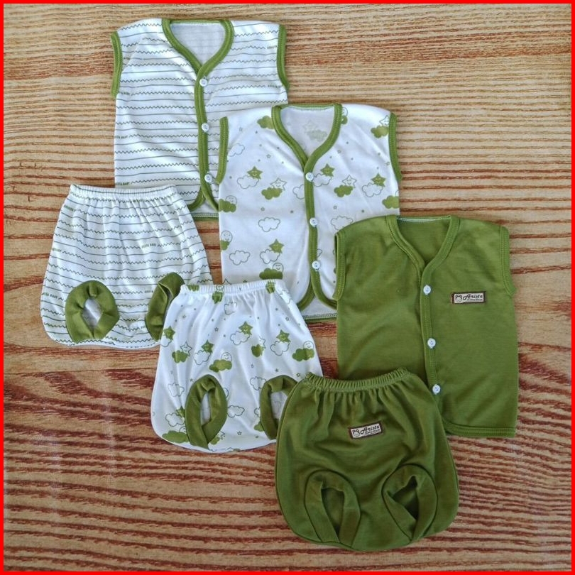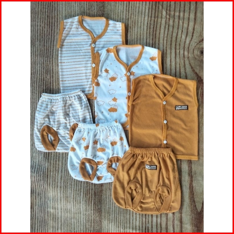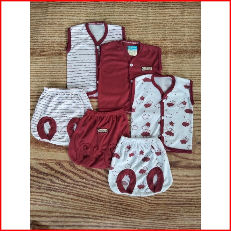 3 Setel 6 Pcs Baju Bayi 0-3 Bulan Lengan Kutung Seri Maron Aristababy