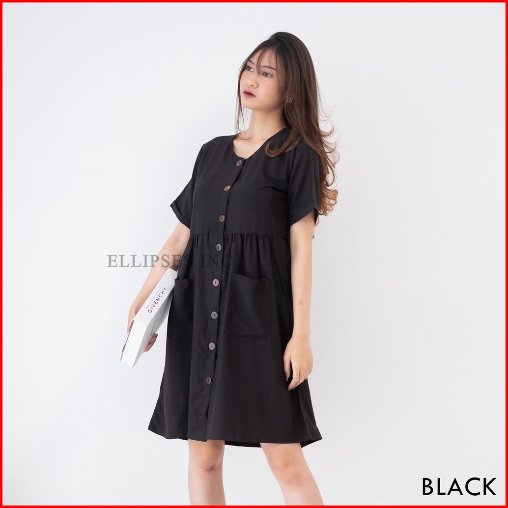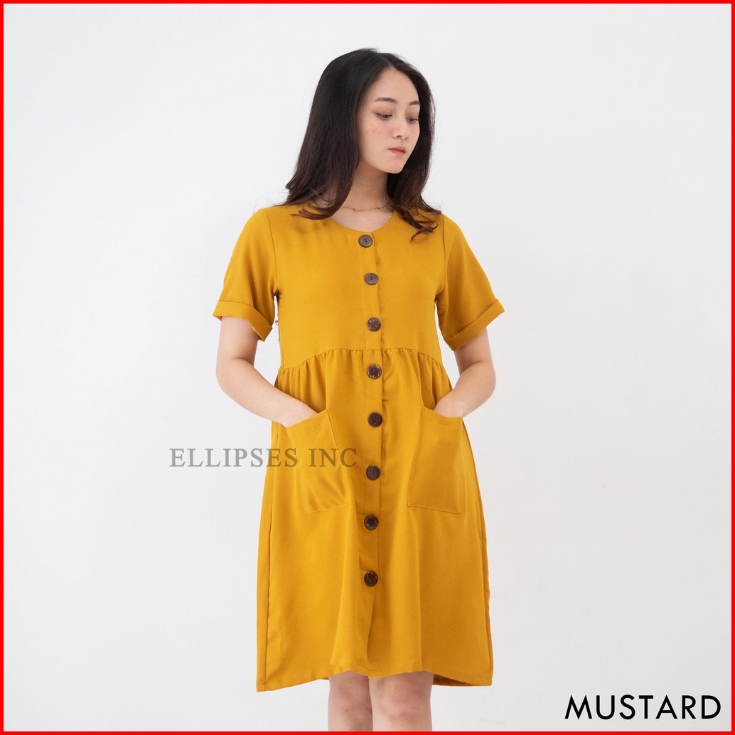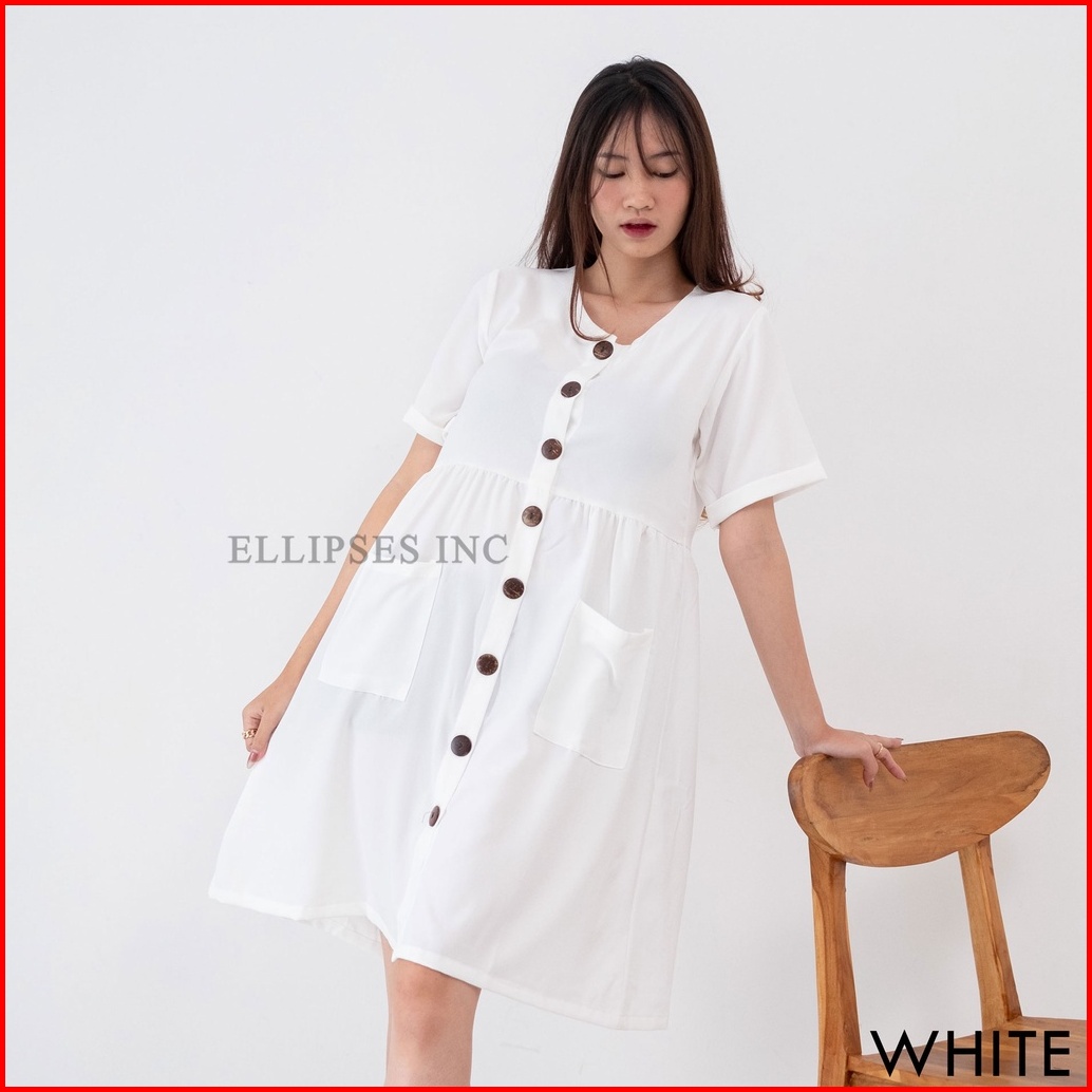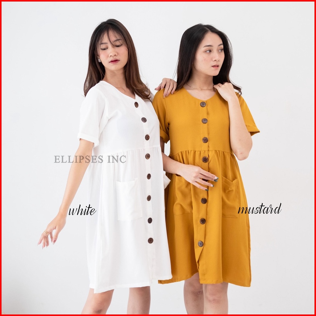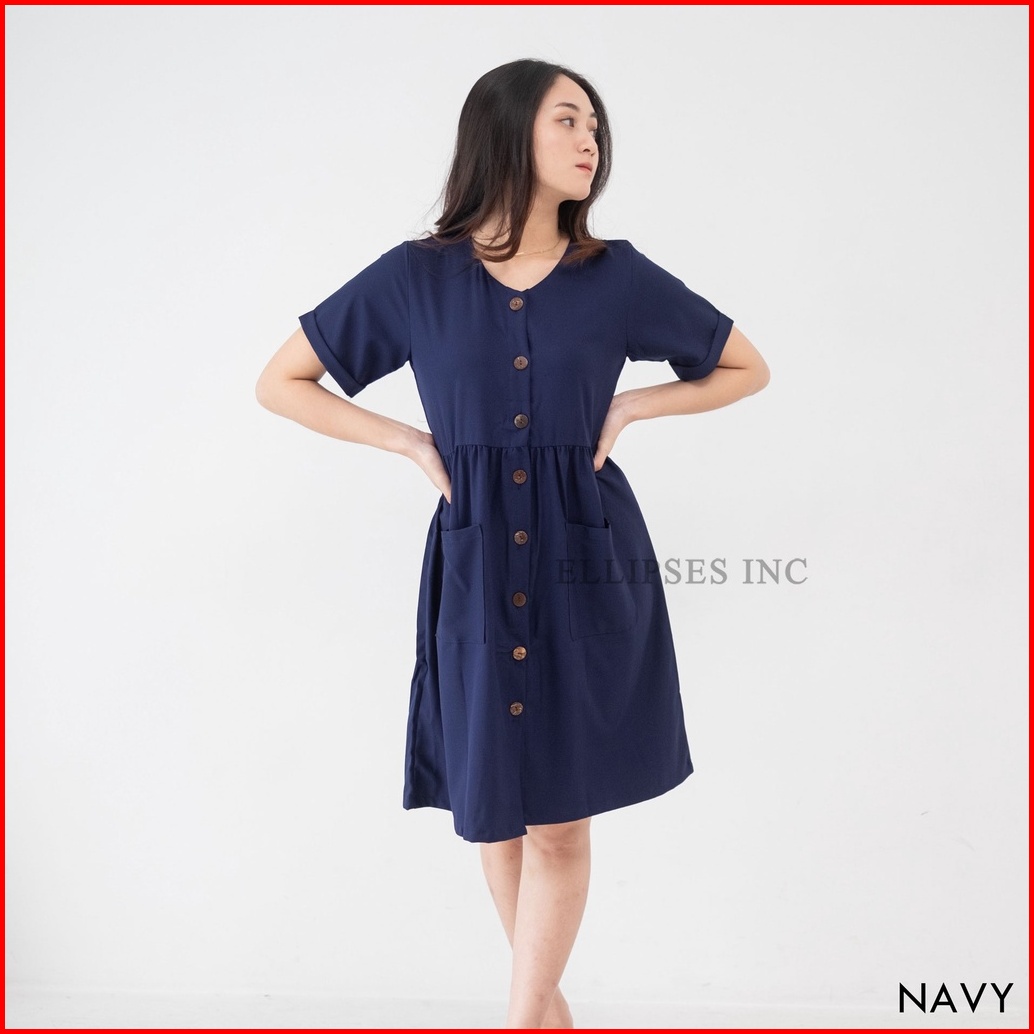 Ellipsesinc Dress Casual Wanita Button Midi Dress