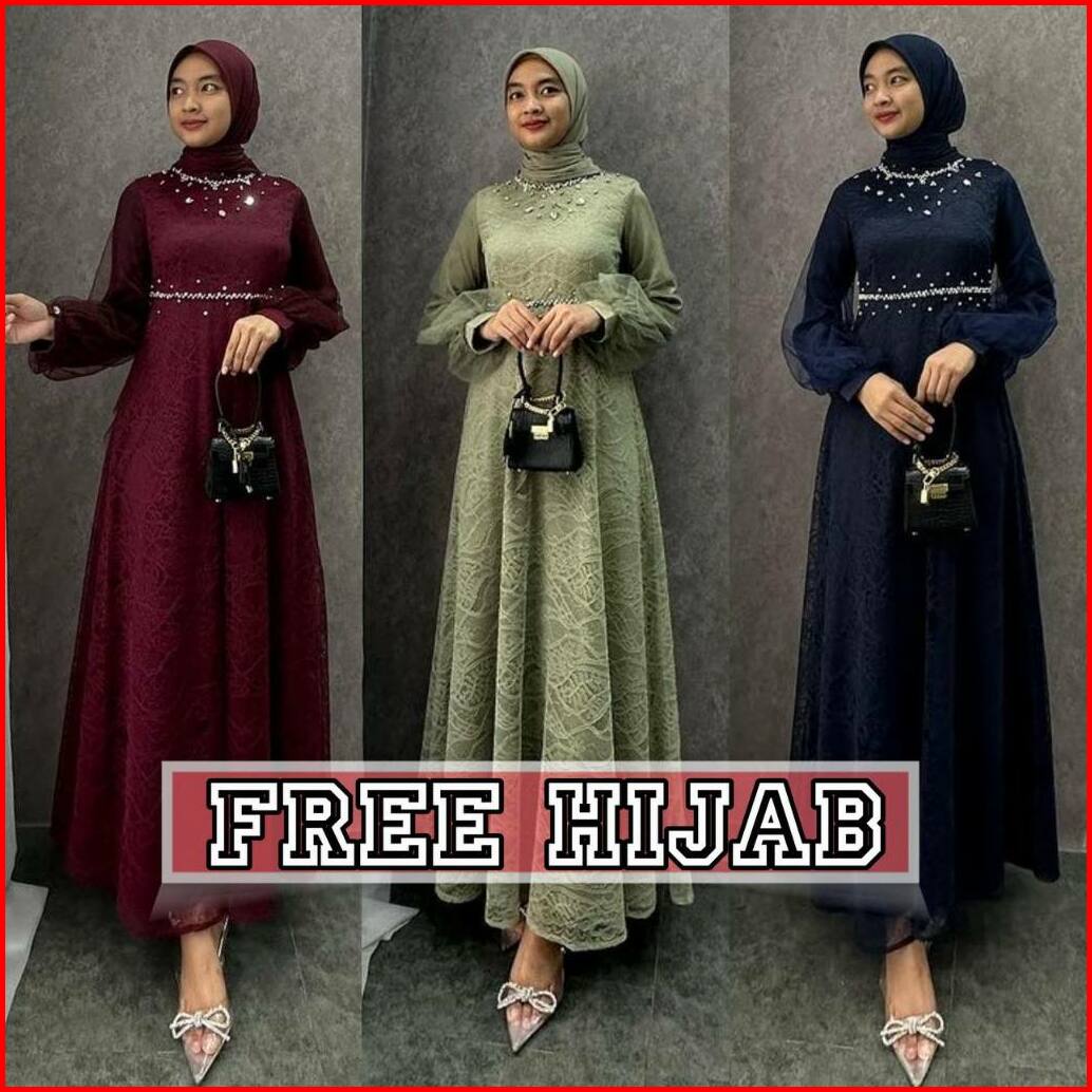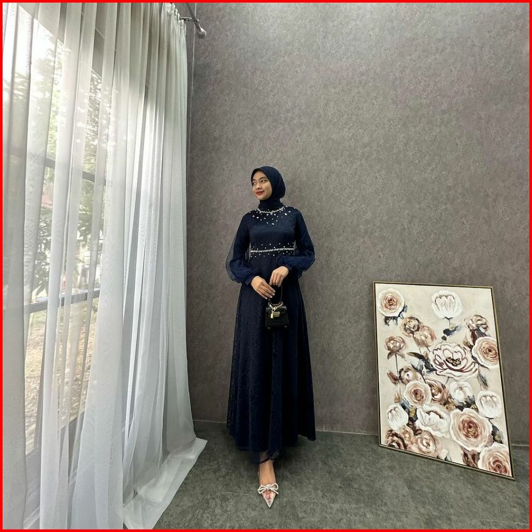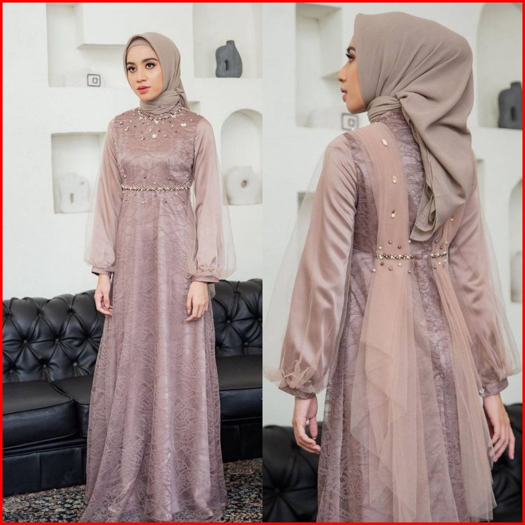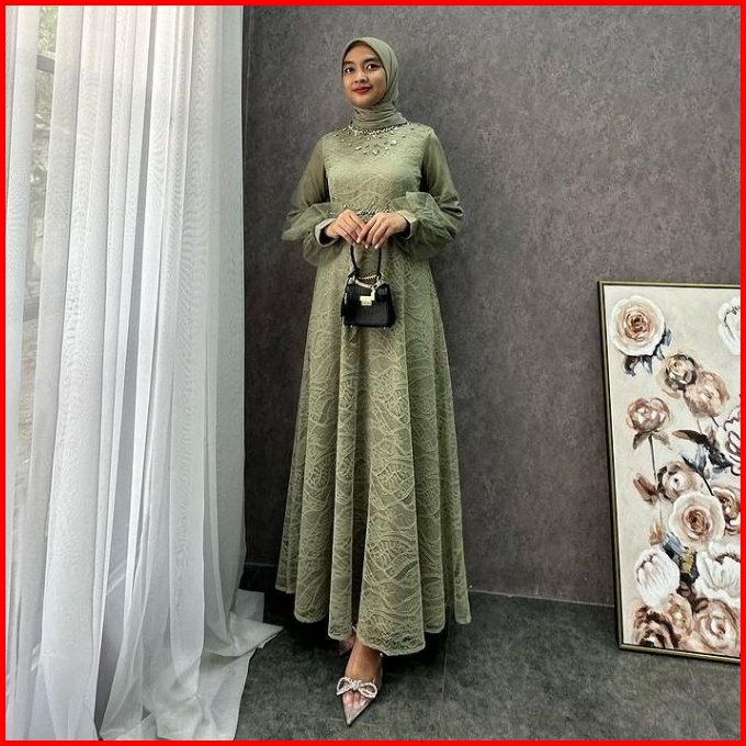 Dress Pesta Exclusiv Mewah Modern Nadine Sage Modern Gamis Terbaru Baju Muslim Kondangan Set Dres Brokat Brukat Pakaian