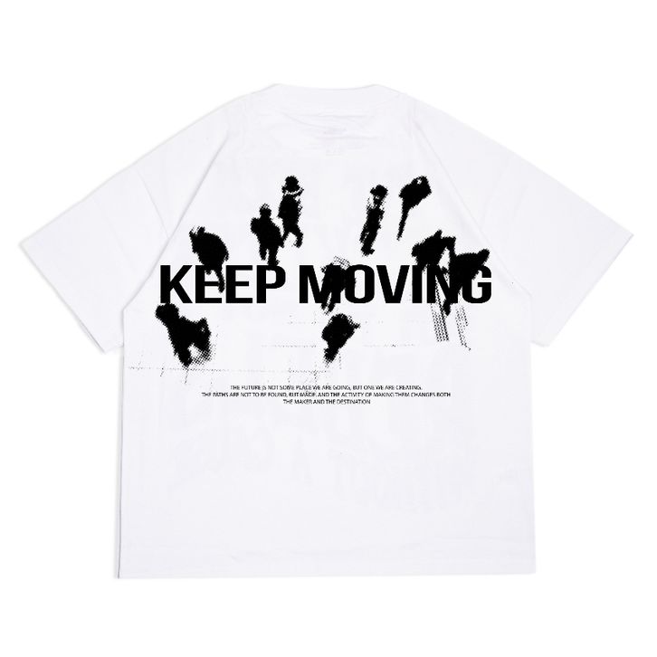 AccentAmbios Boxy Oversized T-Shirt Keep Moving White Unisex - Cotton Combed 20s - Kaos Oversize Pria - Oversize Shirt P