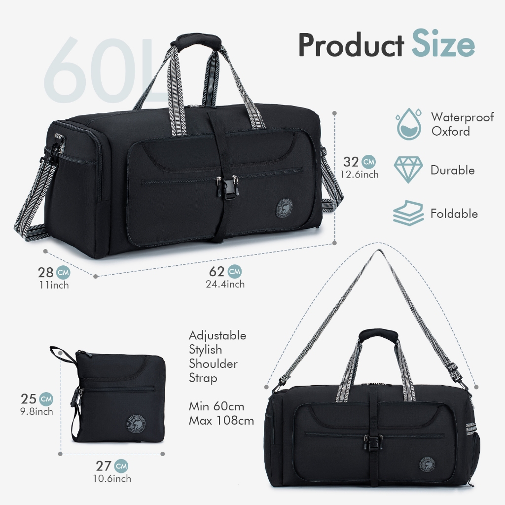 120L/60L Tas Pria Tas Travel Bag Hitam tas travel lipat Tas travel berkapasitas besar pouch travel