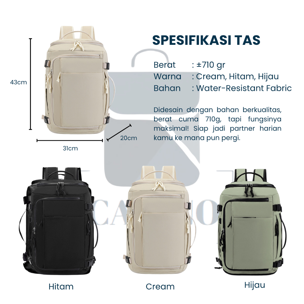 CAVANO KAIRI Travel Backpack Tas 38L Ransel Pria Traveling Multifungsi Backpack Waterproof Cowok Tas Ransel Travel Duffl