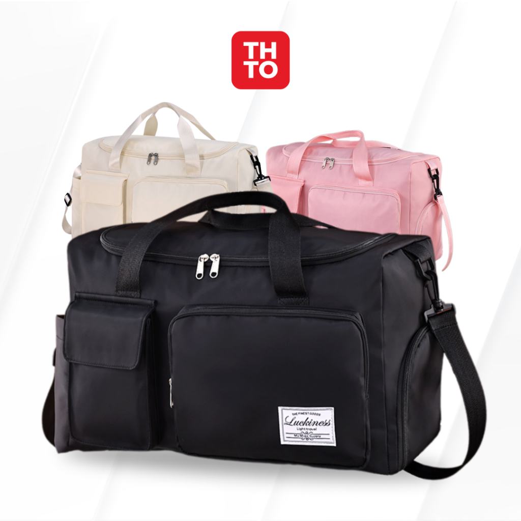 THTO Tas Gym / Tas Travel Olahraga Nylon Hitam Pink Putih - Ukuran Besar - Pria Wanita Unisex A198