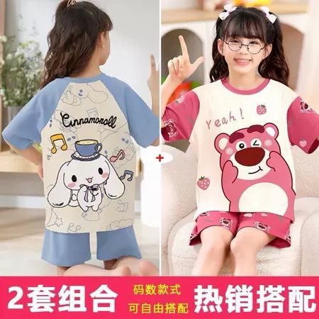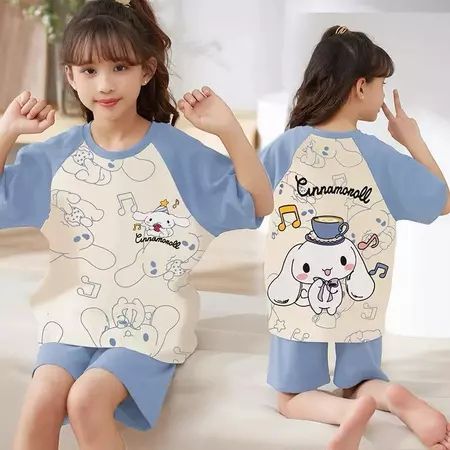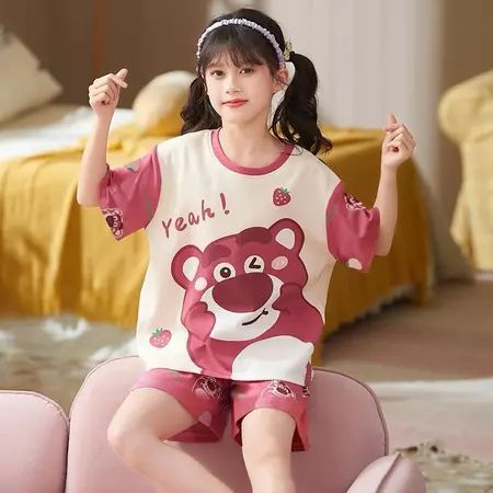 Setelan baju tidur anak lengan pendek motif gemes cewek size S M L XL XXL