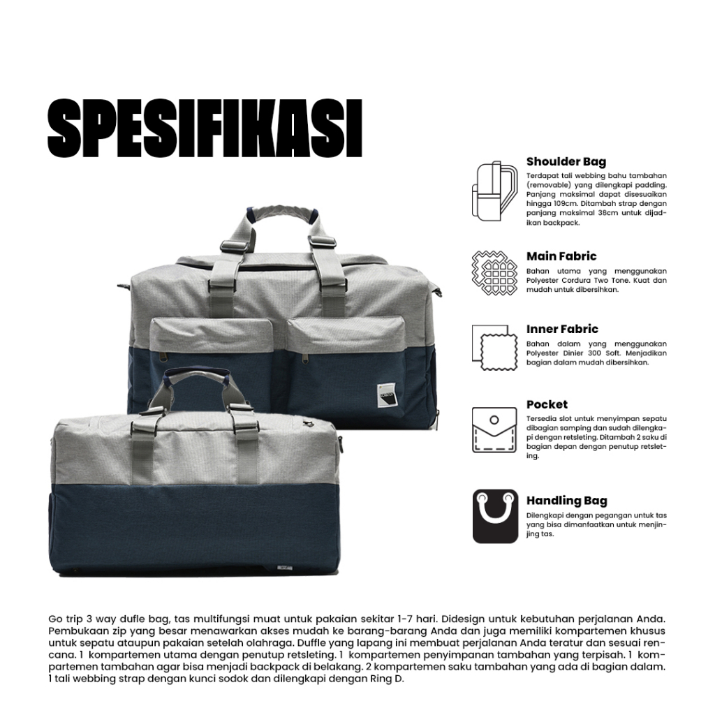 Scratchline Go Trip 3 Way Travel Bag Misty Navy