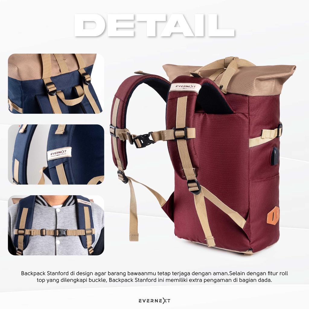 Evernext - Tas Ransel Pria Wanita Tas Sekolah Pria Wanita Backpack Stanford Tas Kuliah Pria Distro