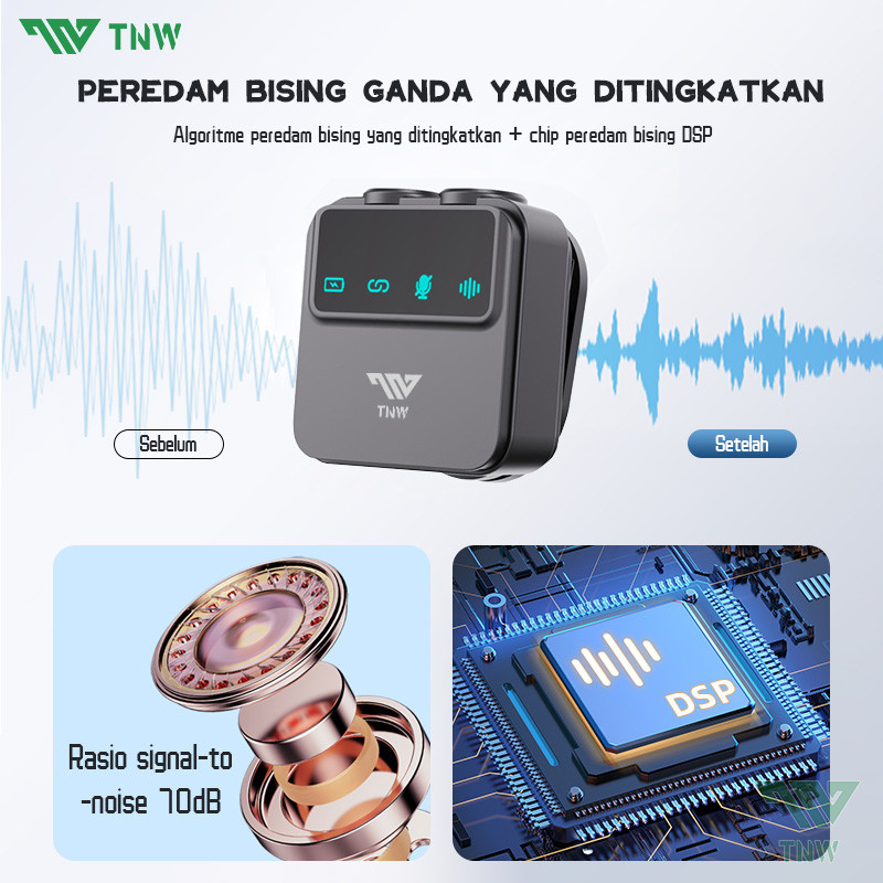 [Star] Tnw A35 Wireless Microphone Clip On Mic Magnetic Mikrofon Nirkabel Lavalier Dual Mic Noise Reduction Untuk Video Vlog Li