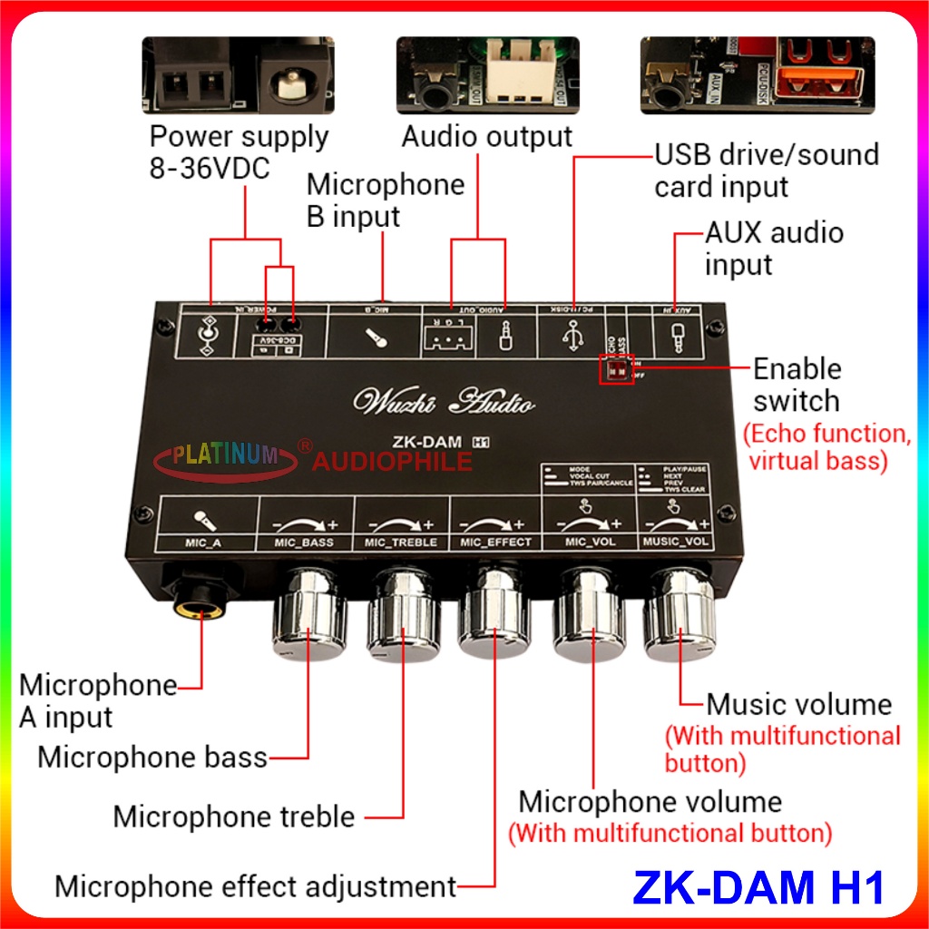 [Star] Karaoke Microphone Reverberation Modul Digital Echo Professional Mixing Front Stage Zk-Dam H1