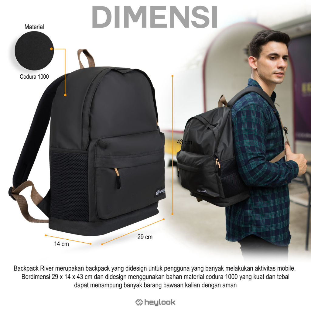 HEYLOOK Official - Backpack RIVER Tas Ransel Laptop Pria Tas Punggung Tas Sekolah Tas Kuliah Tas Leptop 14-16 inch Tas