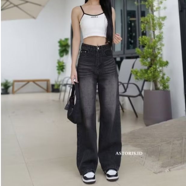 Celana Kulot Jeans Kekinian Highwaist Loose | Korean Baggy straight Jeans wanita