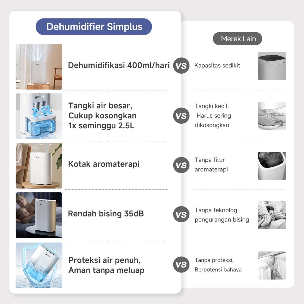 Simplus Pink Upgrade Dehumidifier 2.5L 400ml/Hari Mengurangi Kelembapan Sekitar