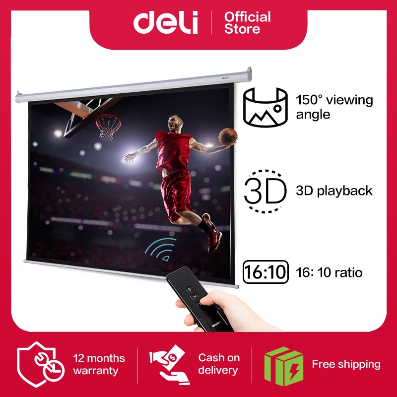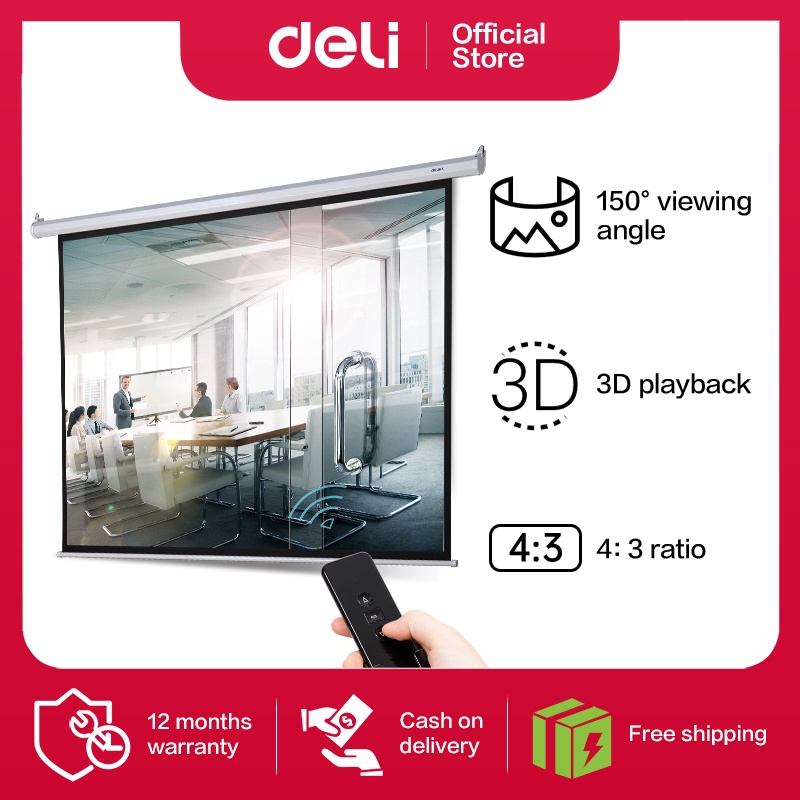 Deli Electric Projector Screen / Layar Proyektor 100 120 Inch Dengan Remote Control E5044X-EU