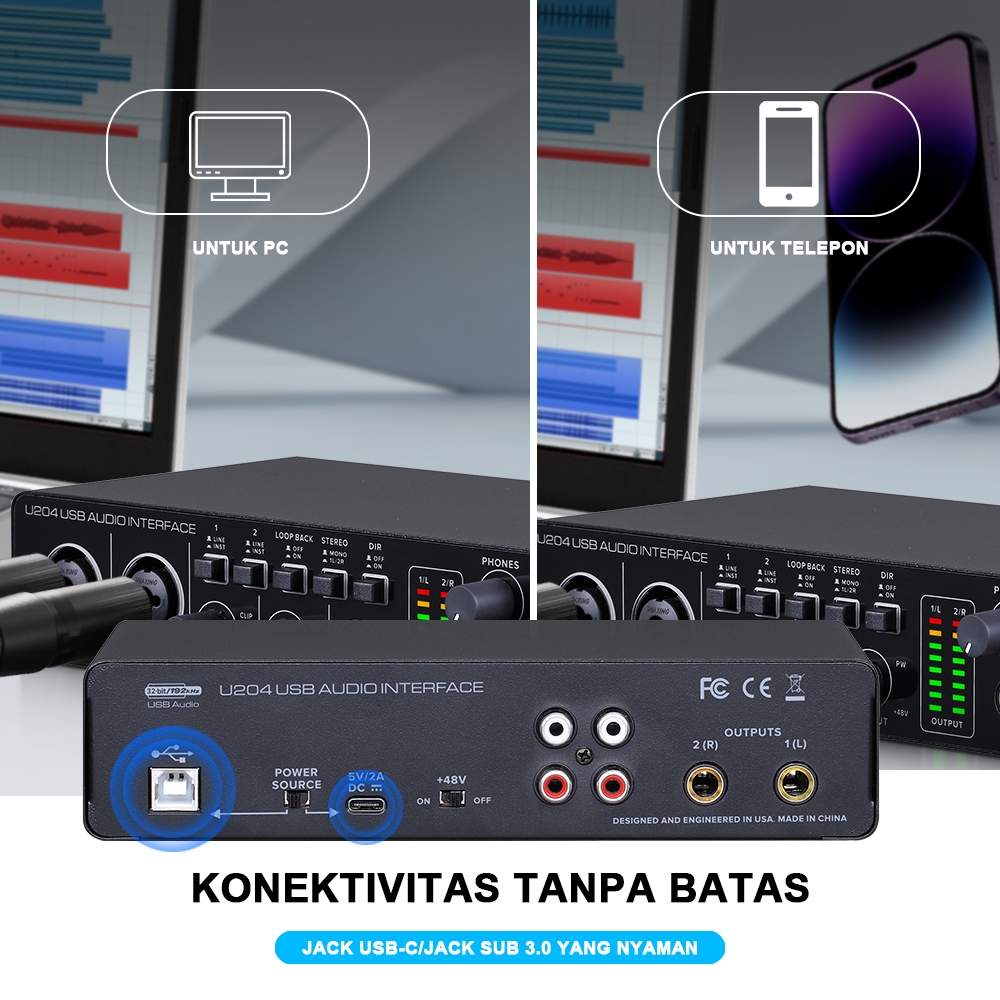 [Star] Bomge U204 Usb Audio Interface Performance Mixer & Recording Interface Mic Preamplifier Xlr/Tsr/Ts Ports, Compatible For