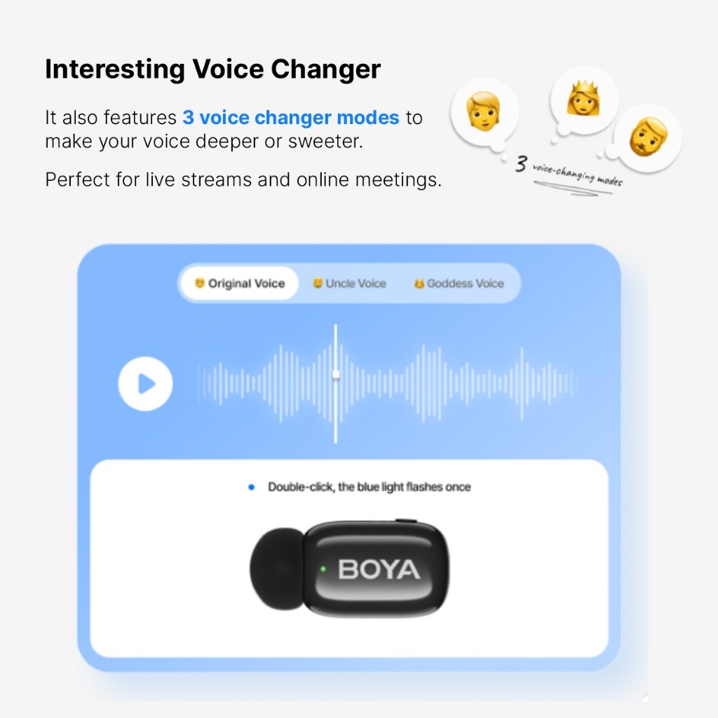 [Star] Boya Mini Mikrofon Klip Nirkabel 2.4Ghz Ultra-Mini Wireless Microphone Dengan Fitur Ai Pengubah Suara Port Lightning & U