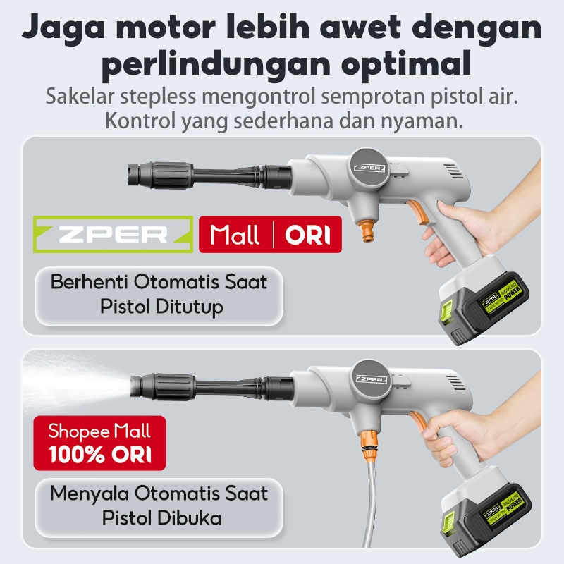ZPER Alat Cuci Mobil semprotan Air Tekanan Tinggi Alat Portable Nirkabel Untuk Nyuci Mesin 600W ZP005
