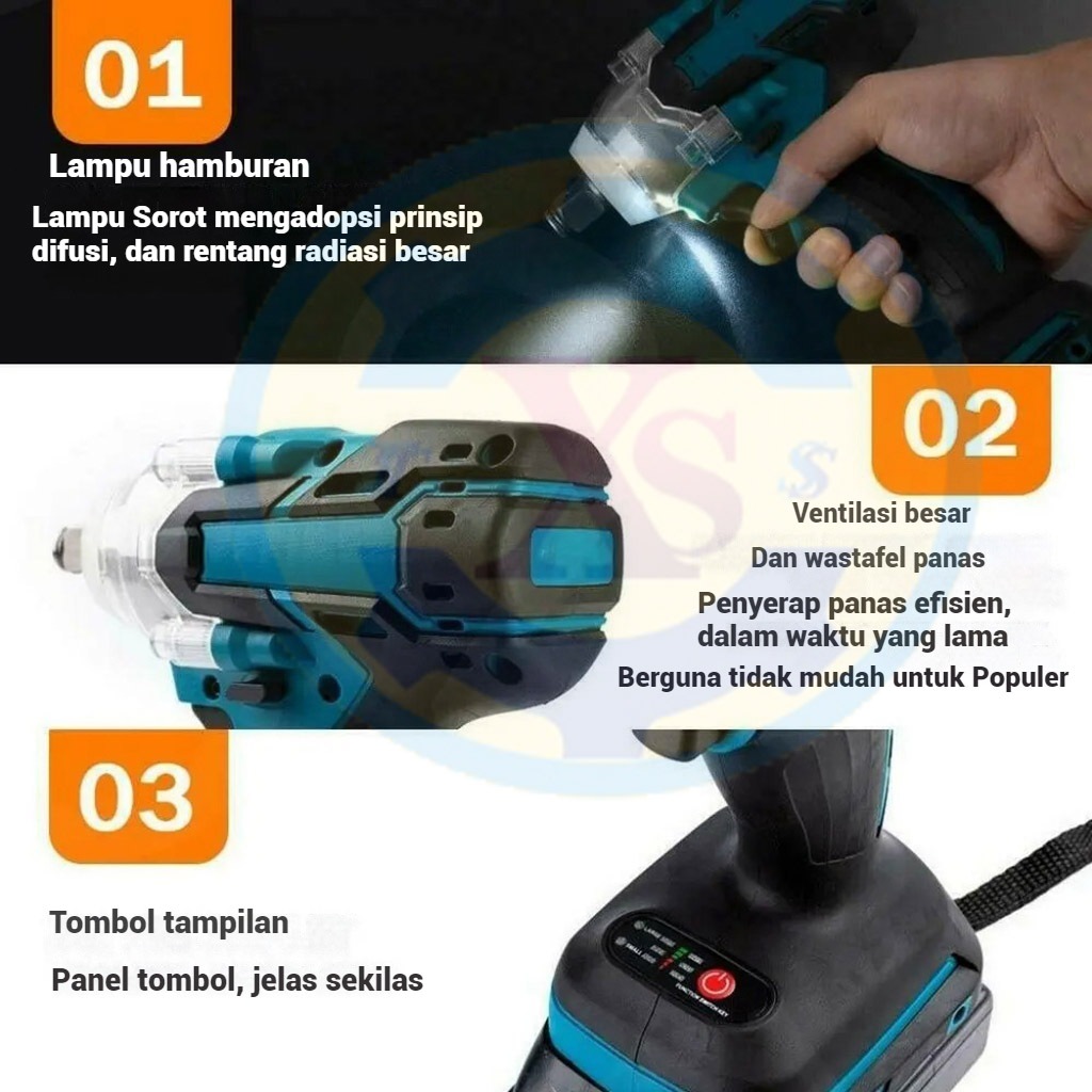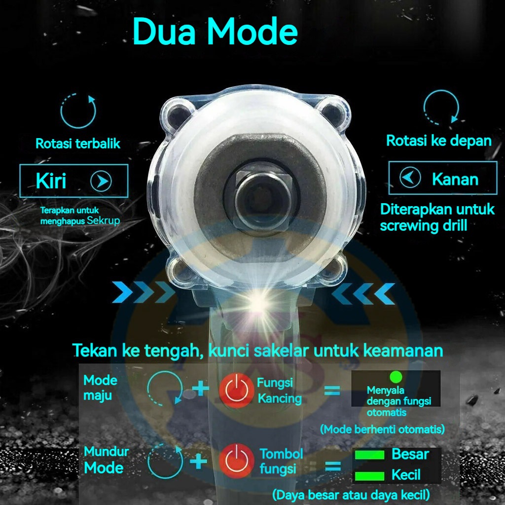 【Garansi 5 Tahun 】Cordless Impact Wrench 388V/588V 680N/M bor baterai impact Brushless Kunci Impact Tanpa Kabel Tanpa Si