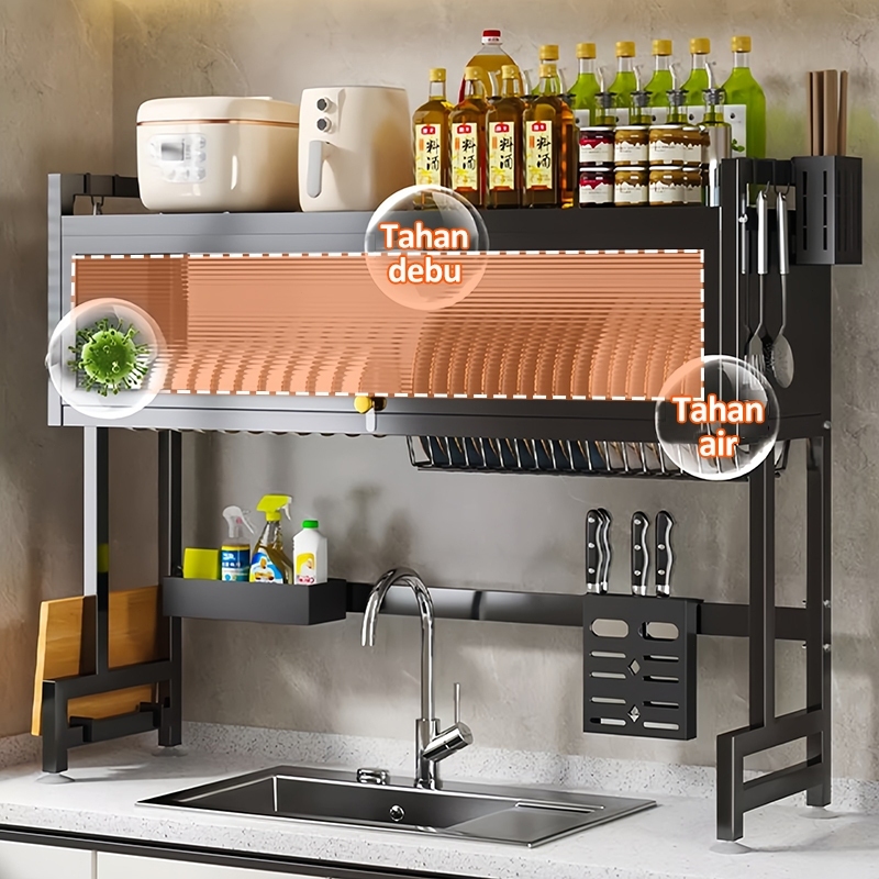 Rak Wastafel Dapur Multi-fungsi Rak Piring Rak Penyimpanan Rak Pembuangan