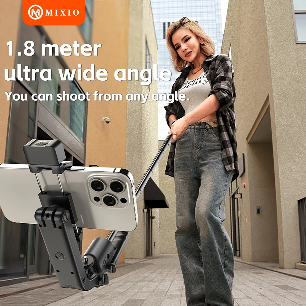 Tripod Handphone Auto Face Tracking MIXIO A388 1.8M 360° Led Quadripod Tongsis Bluetooth Remote Selfie Stick